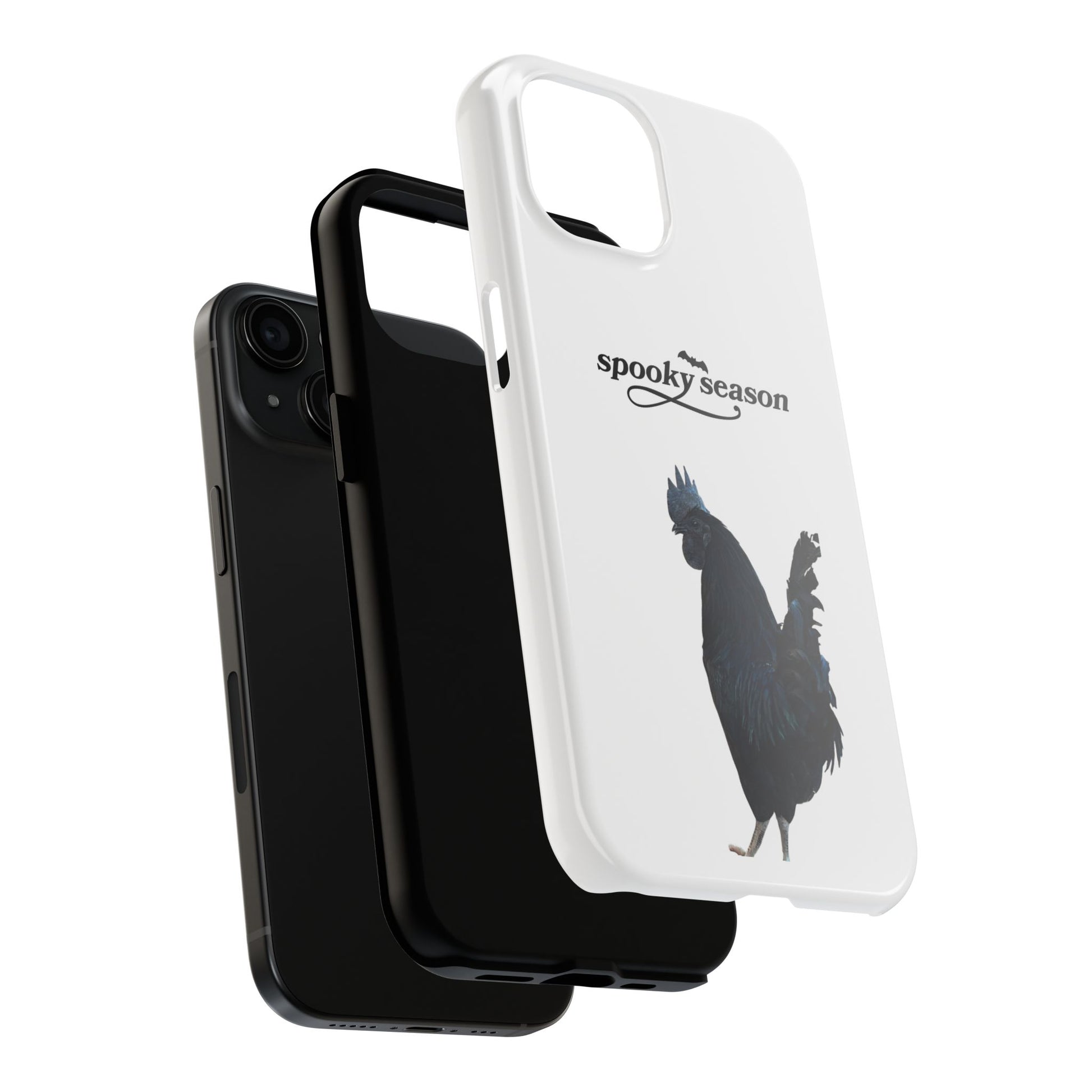 Spooky Season Phone Case, Tough Phone Cases for Halloween, Unique Cell Phone Covers, Black Chicken Design, Fall Accessories
