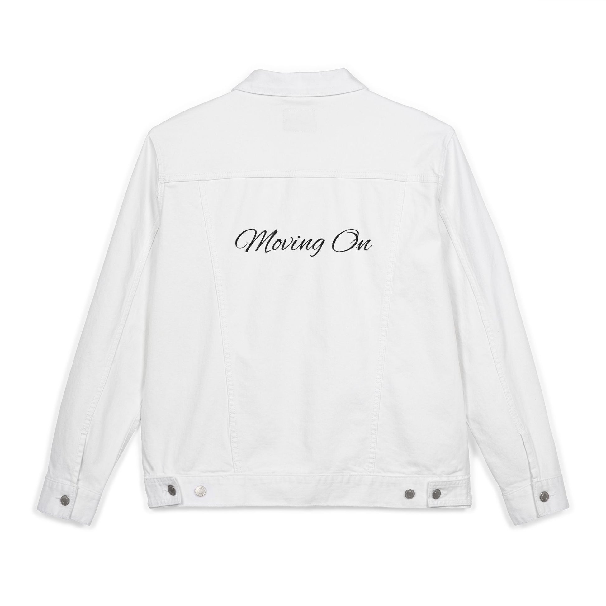 Stylish Embroidered Unisex Denim Jacket, Class of 2026 Moving On, Casual Outerwear, Fashionable Gift, Trendy Layer, Statement Jacket, Everyday Wear
